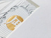 The pieces are hand-made using Pachika, a special paper that becomes transparent when heated. Each individual piece is crafted with skillful control of temperature, pressure, and time during pressing.