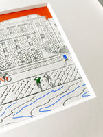 若者たちのスタイルや日常を独特の色彩と温度感で描き出す人気イラストレーター西尾彰典とCiaolinkのコラボレート京都ピクチャーシリーズ。西尾彰典が描く京都の名所と観光を楽しむ人々をCiaolink商品の特徴である緻密なエンボス加工とビビットな箔押しで表現しました。